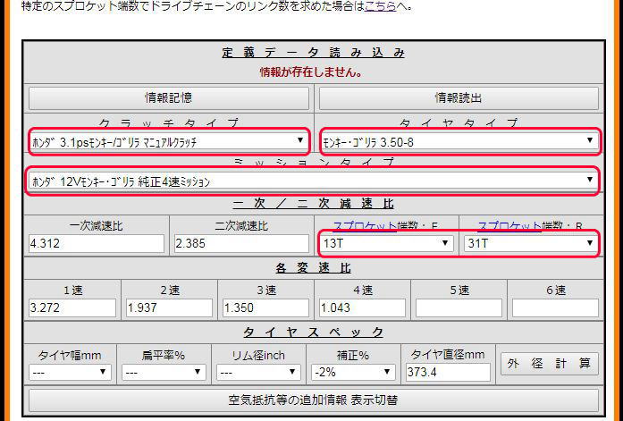 ドライブチェーン・リンク数の計算機1(ロングスイングアーム変更タイプ)