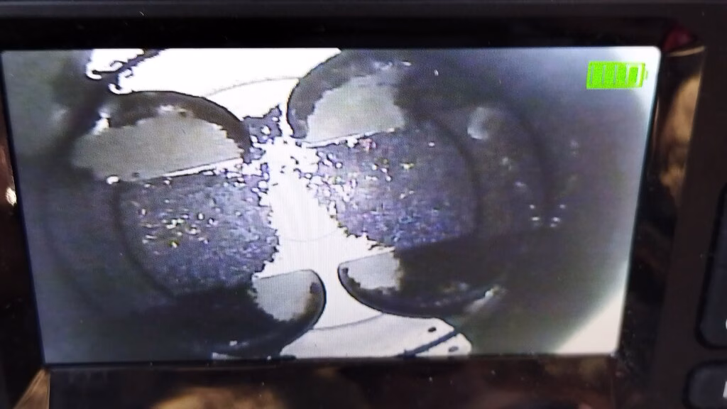 一番シリンダーのピストンヘッドの状態。ピンぼけで見えにくいけど損傷はしてなさそう。